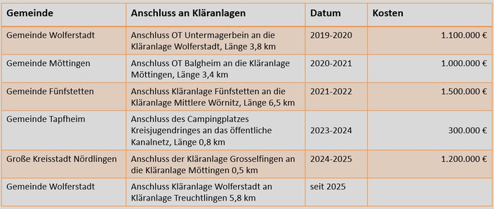 ORTSTEILANSCHLÜSSE AN ZENTRALE KLÄRANLAGEN